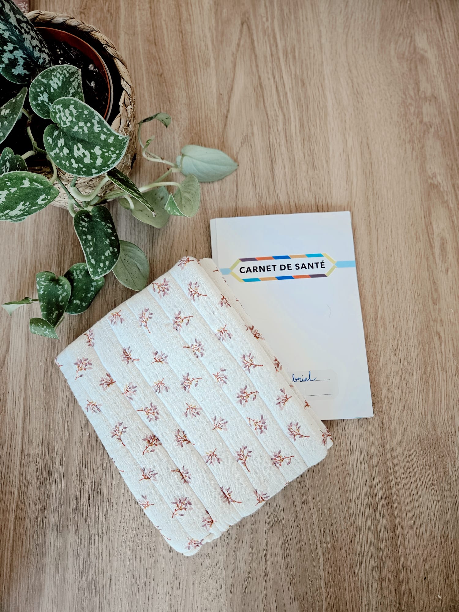 Protégez le carnet de santé de votre trésor avec notre protège carnet de santé en gaze de coton fleuris !